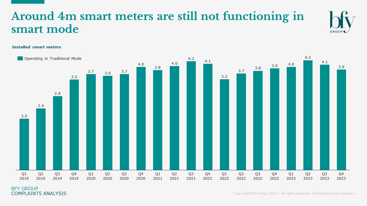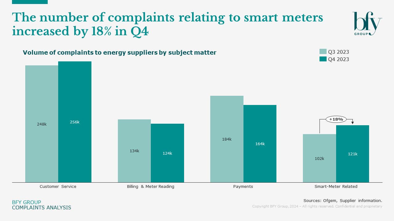 The proportion of complaints relating to smart meters increased during Q4-23, which isn’t surprising given more customers now have smart meters.