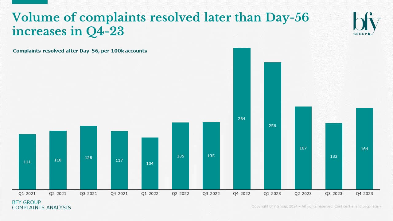 At the end of 2022, we saw a sharp increase in the volume of complaints being resolved after day 56, as suppliers re-deployed back office resource to support unusually high service demand.