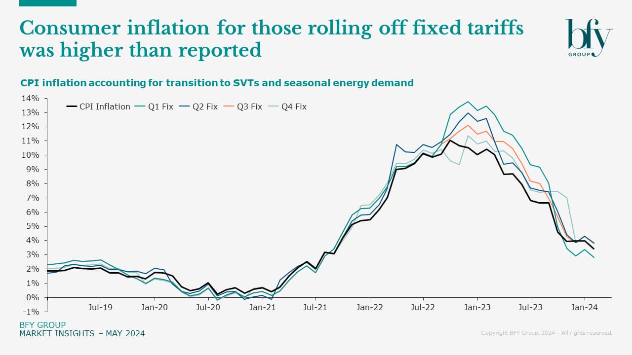 During the energy crisis, many consumers would have felt an additional (and delayed) price increase due to the ending of fixed tariffs with only the standard variable tariff to switch to.