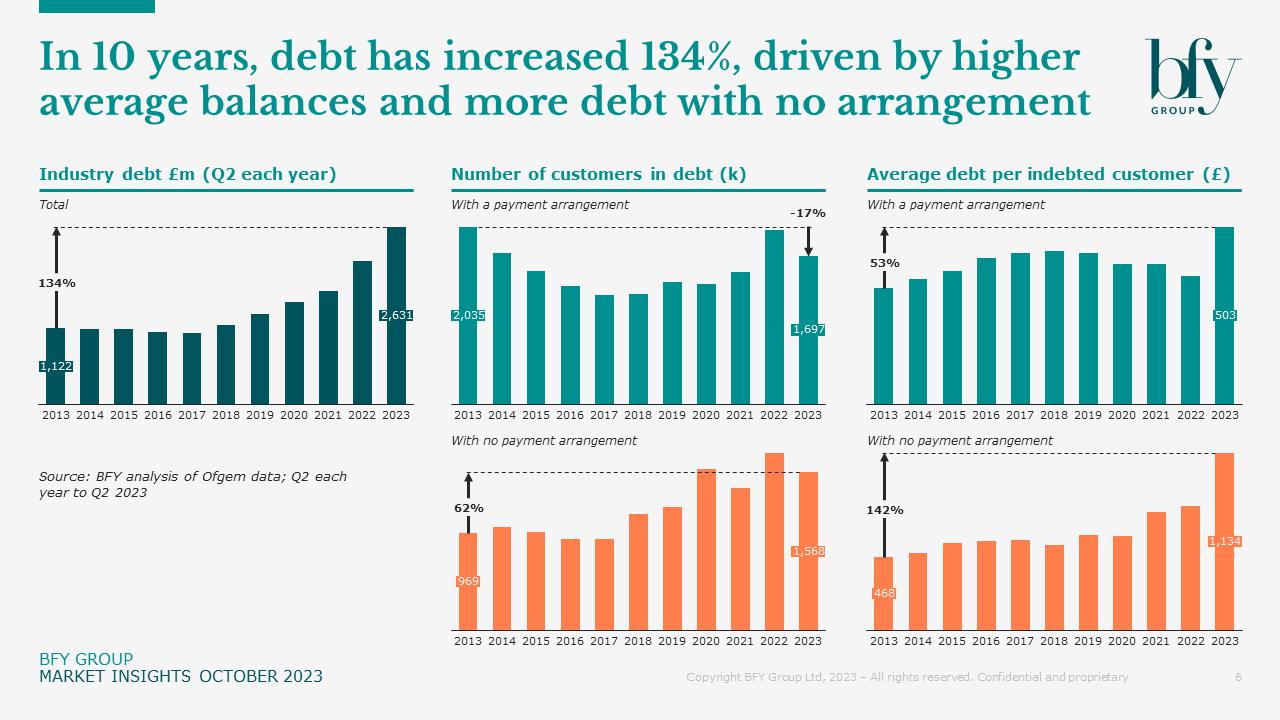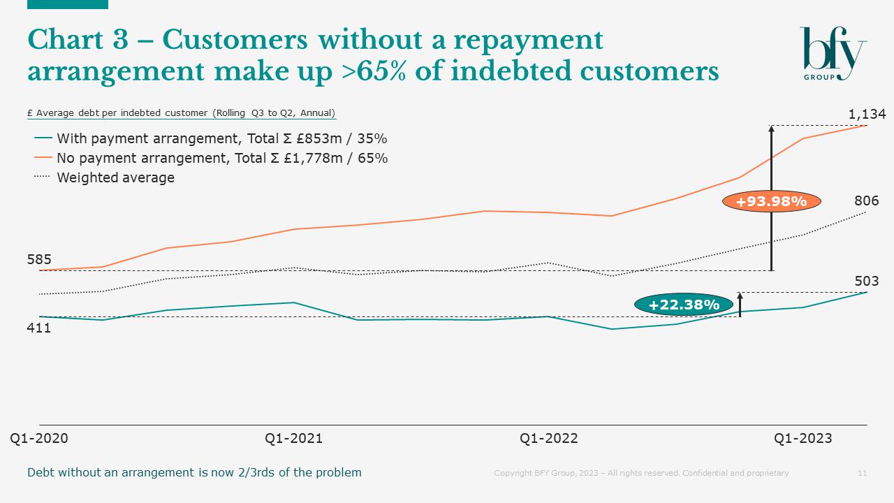 - Two thirds of this debt (>£1.1bn) relates to customers without an agreed repayment arrangement – and these customers are slipping further into debt