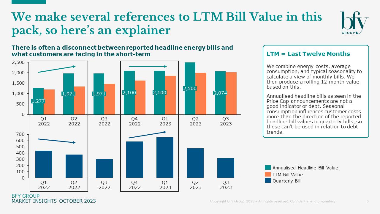 - The increase in actual bills over the Last Twelve Months (LTM) is unsurprisingly driving an increase in customer indebtedness