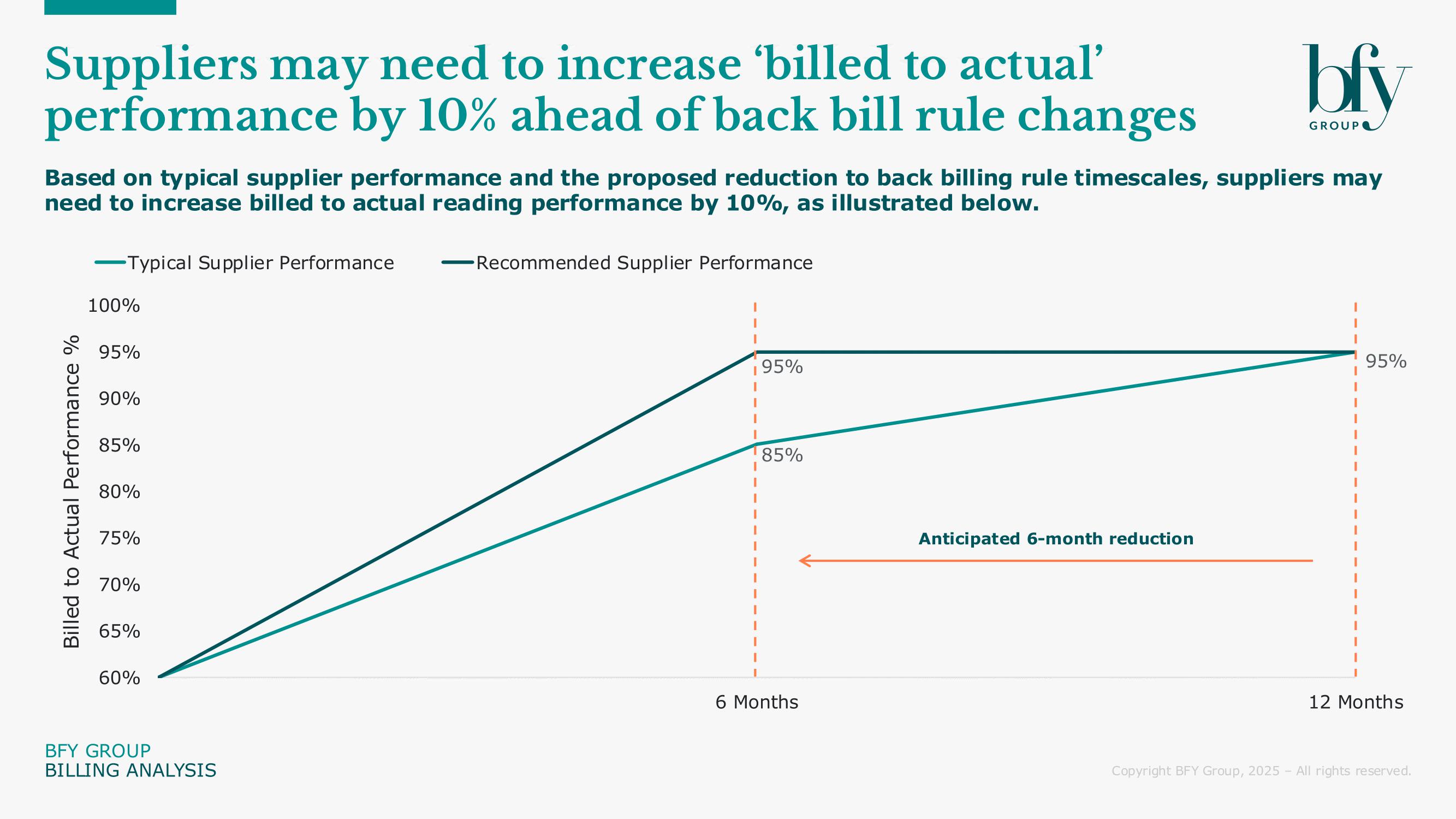 - Increased Commercial Risk: If the back billing window is reduced without corresponding improvements in billing accuracy, suppliers will face a dramatic rise in the volume of undercharged energy they’ll need to absorb, further squeezing already tight margins.