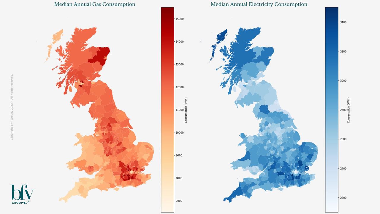 When we compare this with local geographic data, the over generalised nature of the Price Cap starts to become apparent. DESNZ publishes localised consumption values for each local authority, with the most recent data from 2021 revealing a significant variation between areas.
