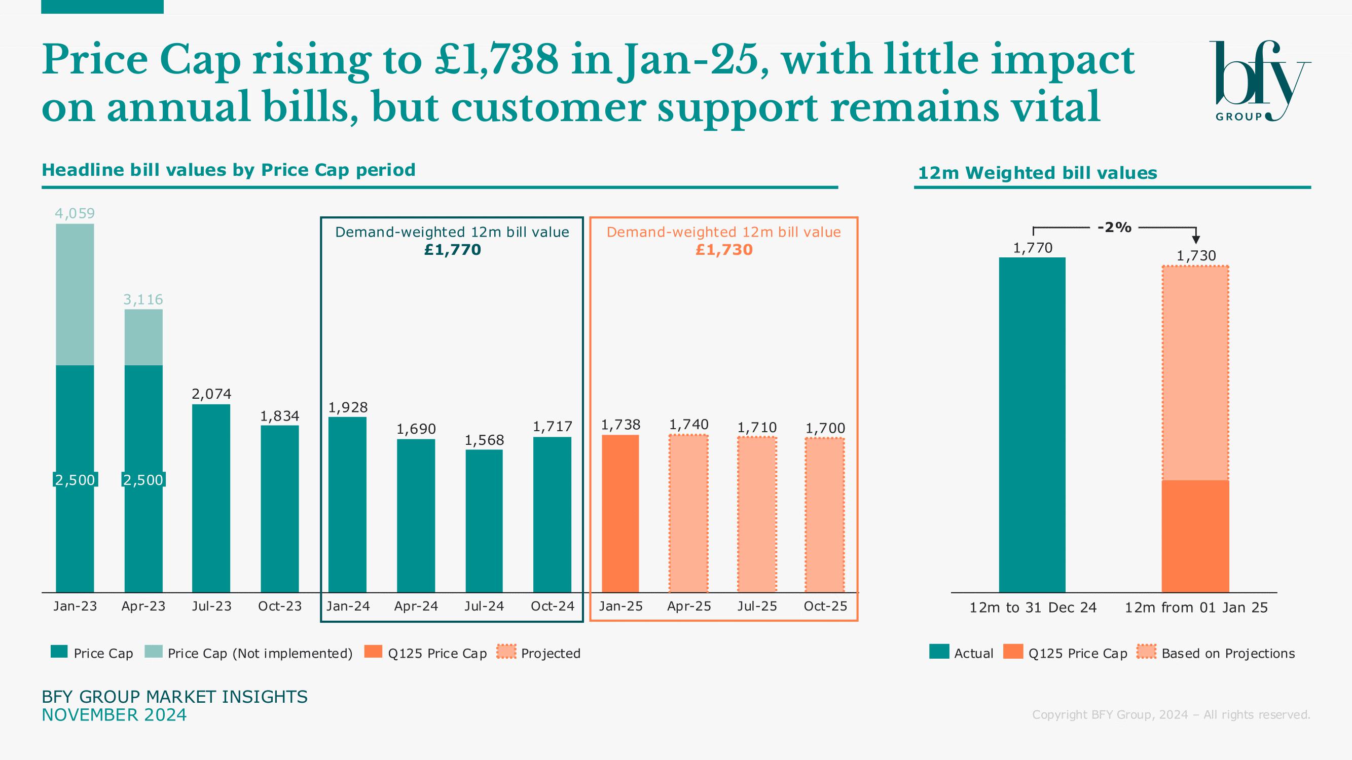 - Price Cap creeps up to £1,738, but this will have little impact on customer bills over 12 months
