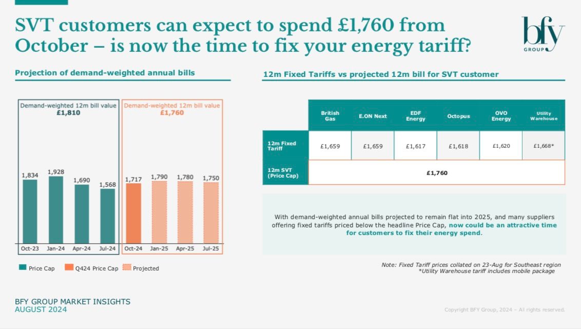 With annual bills projected to remain flat into 2025, and many suppliers offering fixed tariffs priced below the headline Price Cap, now could be an attractive time for customers to fix their energy tariff.