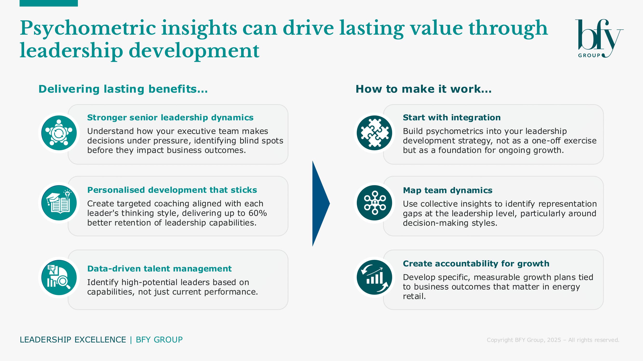 Drawing on insights from our Leadership Excellence programme, this article explores how the strategic use of psychometrics can measurably elevate leadership capability and customer experience.