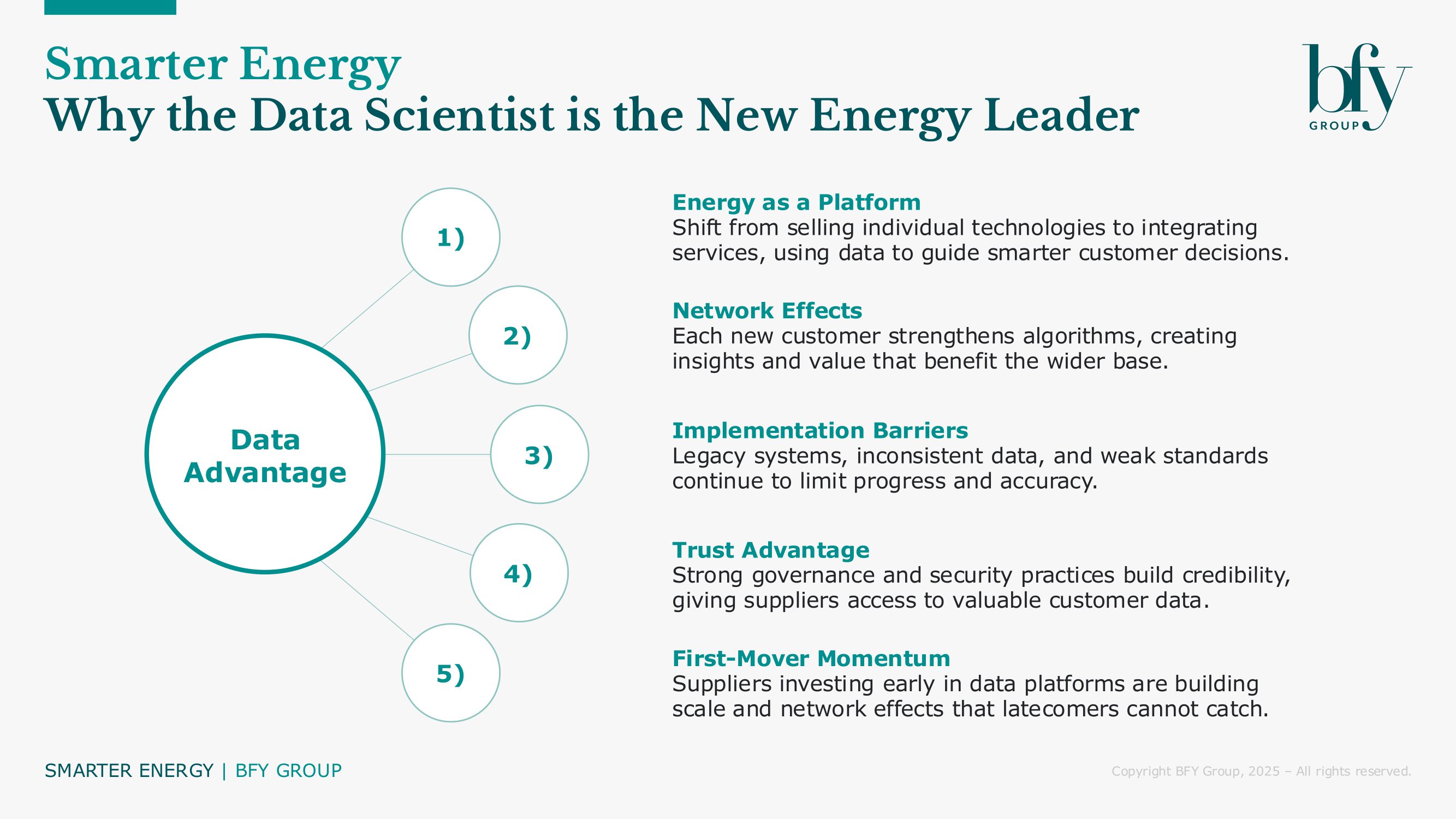 The competitive implications are profound. Each additional customer strengthens algorithms and improves outcomes for existing participants, creating network effects that traditional energy companies struggle to replicate. Success depends on the depth of customer insight rather than the volume of the commodity supplied.